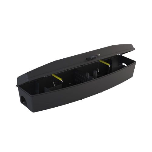 Rampa wewnątrz osłony umożliwia wbiegnięcie myszom bezpośrednio na płytkę pułapki zatrzaskowej. AF Trapmus może być używany z 2 pułapkami na myszy Snap E, w razie potrzeby również z trutką.