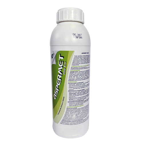 zabieg ULV ("zimna mgła") Sporządzić 5% roztwór wodny preparatu Aspermet 200 EC. Część użytej do sporządzenia roztworu wody zaleca się zastąpić nośnikiem stosowanym w zabiegach ULV, który poprawia efekt skuteczności "zimnej mgły". 10 litrów cieczy roboczej wystarcza do opryskania powierzchni 1 ha.