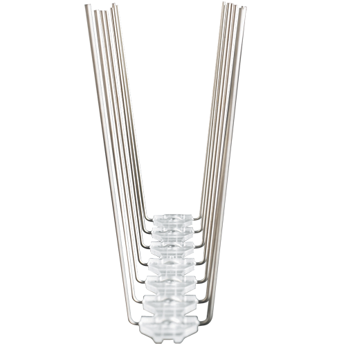 Idealne do zastosowania w miejscach dziennego przebywania gołębi. Na bardzo wąskich gzymsach budynków, ich podstawa ma tylko 20mm szerokości. Odległość między pojedynczymi kolcami – 50mm. Rozstaw górny kolców – 50mm. Szerokość powierzchni zabezpieczenia 115mm. Produkt dostępny w modułach długości 33 cm. Jednostką sprzedaży jest 5 mb (15 modułów) lub 50 mb (10 paczek po 15 modułów)