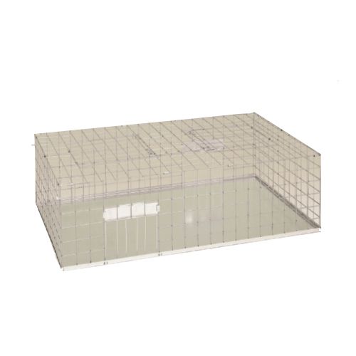 Klatka wykonana ze stali galwanizowanej do odłowu gołębi. Klatka posiada dwa boczne otwory wejściowe dla gołebi, dwa zamykane otwory w górnej części do wyjmowania ptaków i sypania przynęty oraz podstawę z blachy z kołnierzem 2 cm. Wymiary rozłożonej klatki 103 x 62 x 31 cm. Wymiary transportowe (po złożeniu) 104 x 64 x 2 cm. Masa 8,5 kg.