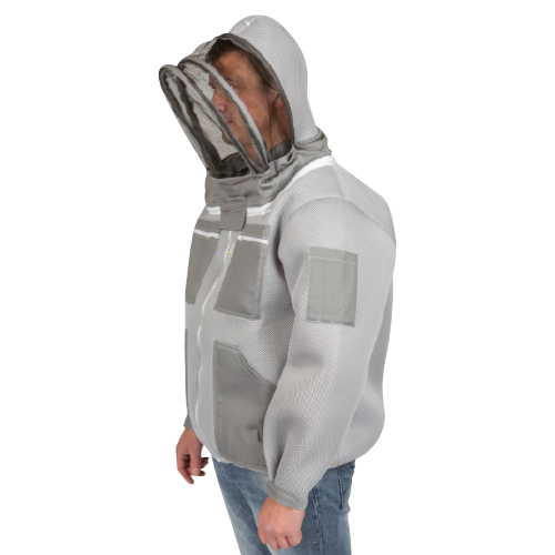 Wysokiej jakości szara kurtka pszczelarska, zapewniająca lepszą ochronę niż klasyczna odzież pszczelarska. Lekka i wygodna w noszeniu, mankiety na rzep, kieszeń na telefon zapinana na zamek błyskawiczny. Trwałe zamki. Można prać w pralce. Rozmiar do 54".