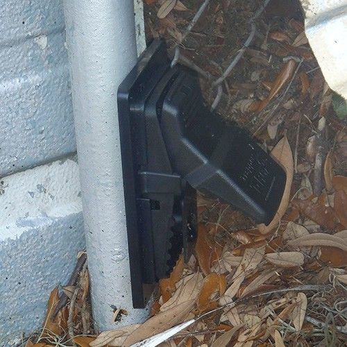 Mocny uchwyt magnetyczny do pułapek zatrzaskowych na szczury T-Rex i Snap-E, pozwalający w szybki i bezpieczny sposób przytwierdzić pułapki na szczury do metalowych powierzchni jak np. belki, rury czy podpory.