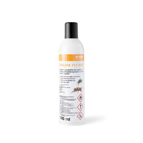 Seclira® Fly Bait to pierwsza gotowa do użycia i szybka w działaniu przynęta w sprayu na muchy. Produkt bezbarwny i bezwonny, o długotrwałym działaniu (min. 6 tygodni). Przeznaczona do zwalczania much w rolnictwie jak też w gospodarstwach domowych i budynkach komercyjnych. Można stosować w obecności zwierząt. Nie wolno stosować bezpośrednio na zwierzęta, ani na powierzchnie na których żywność jest przechowywana, przygotowywana lub spożywana. Opakowanie 250 ml wystarczy do zabezpieczenia obszaru 200 m².
