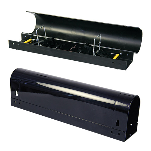Obudowa pozwalająca na bezpieczne użycie jednocześnie dwóch pułapek zatrzaskowych - MYSZOŁAPKA SNAP-E. Wewnątrz obudowy oprócz miejsca na dwie pułapki zatrzaskowe znajduje się pojemnik na atraktant. Kształt otworu wejściowego nie wzbudza nieufności myszy. Produkt sprzedawany bez pułapek zatrzaskowych.