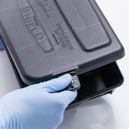 Karmnik deratyzacyjny do monitorowania i zwalczania myszy i szczurów. Zamykany na klucz EVO, z pokrywą odchylaną na lewy bok. Wewnątrz trzy pionowe pręty pozwalają na bezpieczne umieszczenie preparatu. Wymiary karmnika 24 x 16 x 8,8 cm Opakowanie zawiera 12 sztuk.