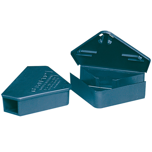 Stacja deratyzacyjna do monitorowania i zwalczania myszy. Wyjątkowy kształt umożliwia zamontowanie karmnika zarówno przy ścianie jak i w rogach ścian.