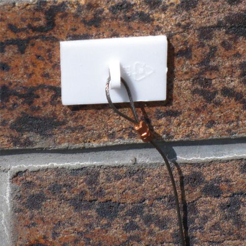 Plastikowe elementy mocujące tworzące wraz z linką stalową ø=1,2 mm i tulejkami aluminiowymi - system mocujący karmniki deratyzacyjne w sytuacjach, gdy niemozliwe jest przymocowanie ich do ściany lub podłoża. Opakowanie zawiera 100 tulejek. Do zamocowania jednego urzadzenia konieczne są dwie tulejki